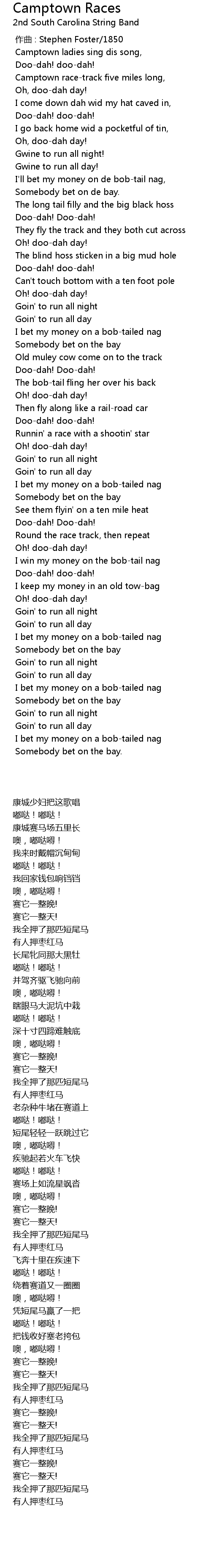 | [00:48.473] | I'll bet my money on de bob-tail nag, |