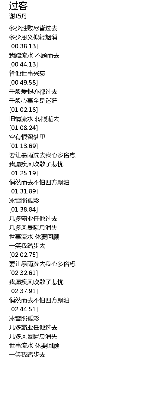 | [00:38.83] | 我踏流水 不顾而去 |