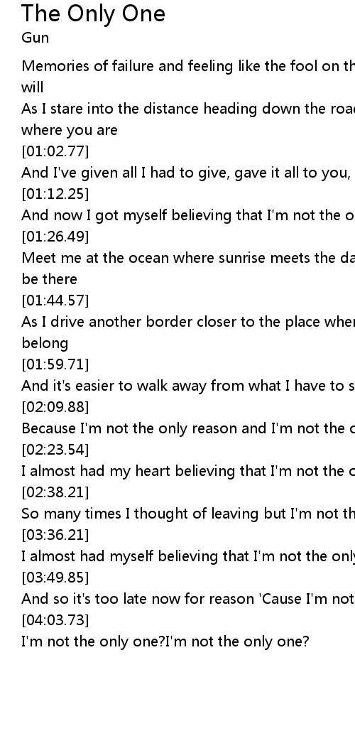 | [01:14.94] | And now I got myself believing that I'm not the only one |