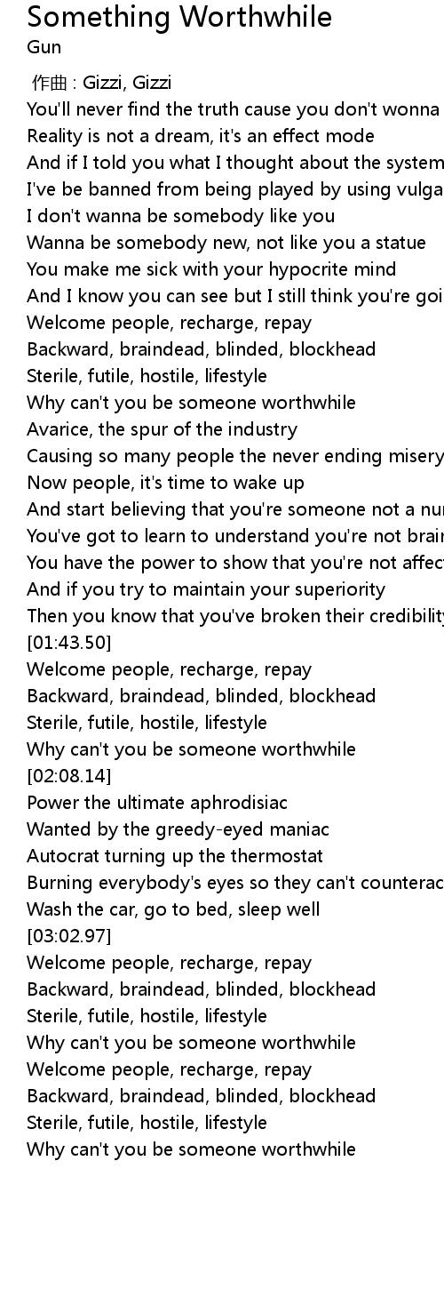 | [03:47.57] | Why can' t you be someone worthwhile |