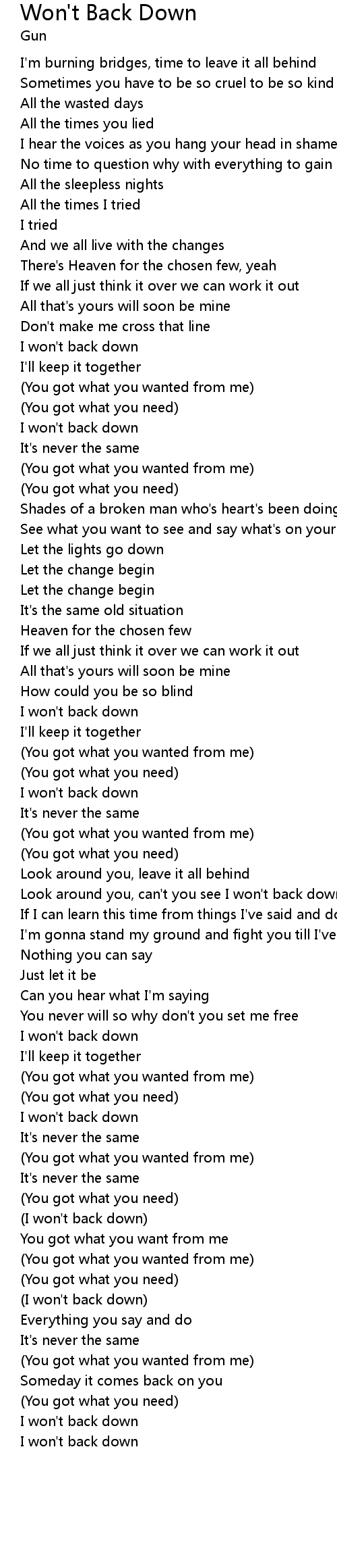| I won't back down | |