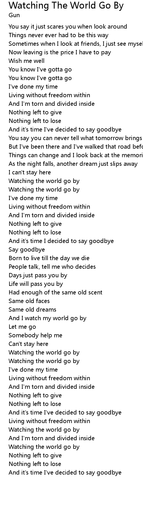 | And I watch my world go by | |