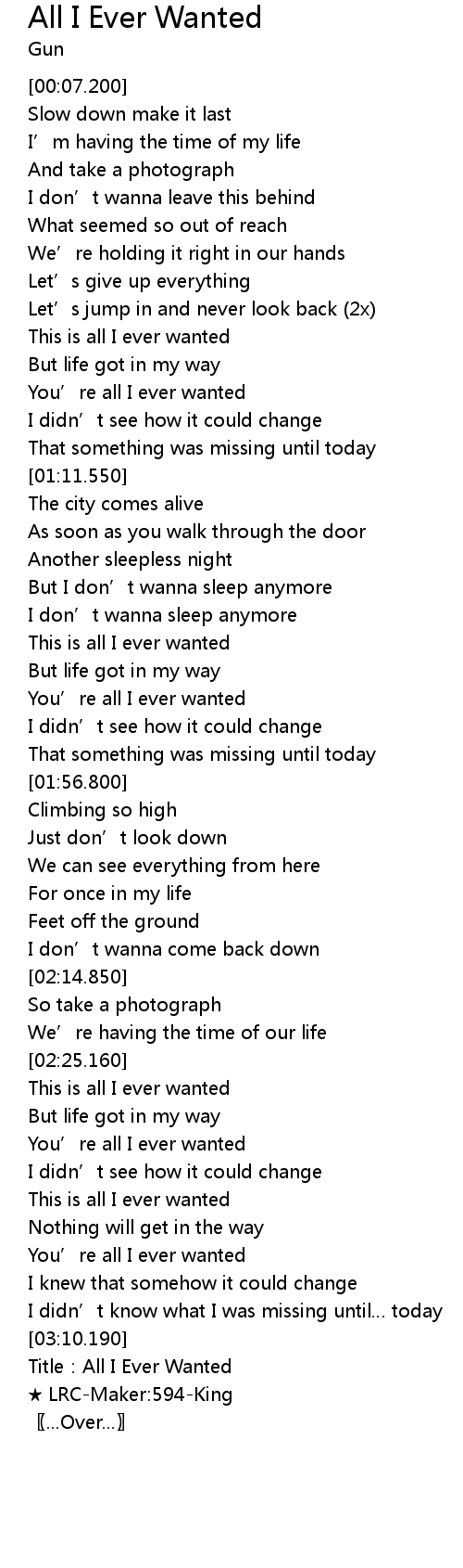 | [01:25.130] | But I don' t wanna sleep anymore |