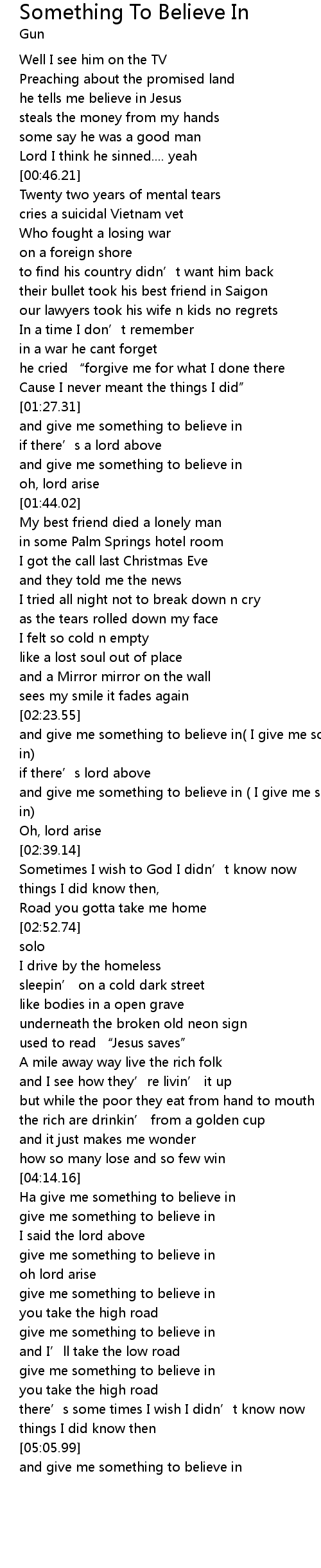 | [04:43.77] | give me something to believe in |