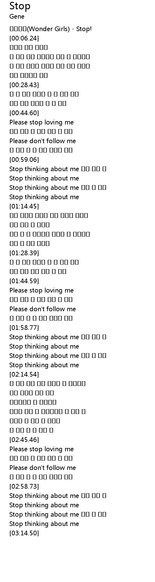 | [03:07.84] | Stop thinking about me 이런 건 싫어 |