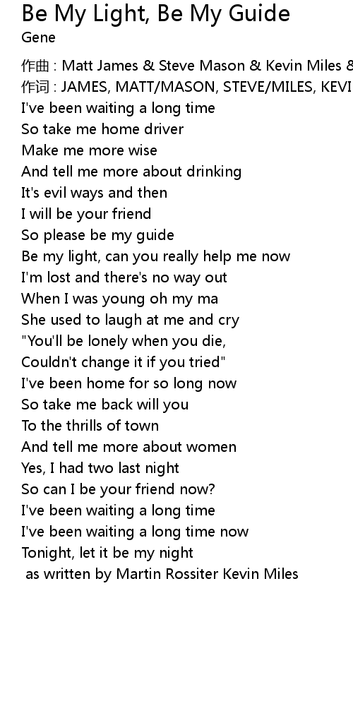 | 歌曲 | Be My Light, Be My Guide |