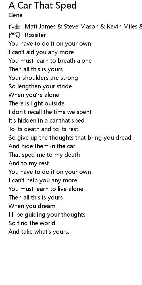 | 歌曲 | A Car That Sped |