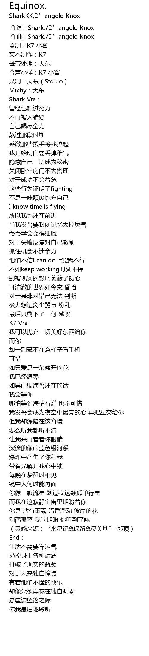 | [00:00.000] | 作词 : Shark./D’angelo Knox |