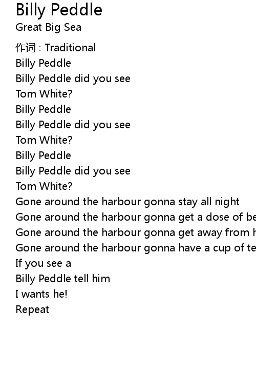 | 歌曲 | Billy Peddle |
