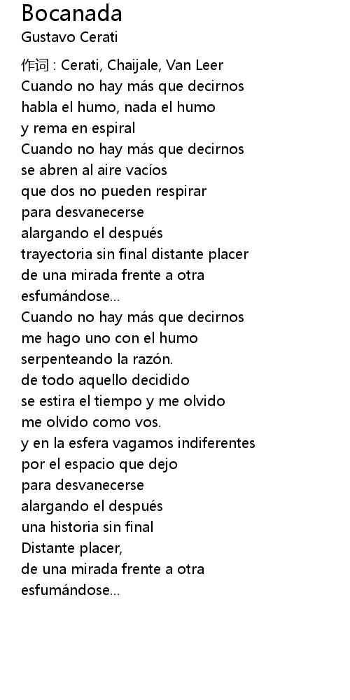 | 歌曲 | Bocanada |