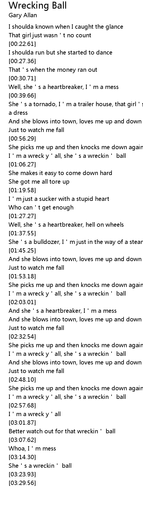| [02:53.73] | I m a wreck y all, she s a wreckin ball |