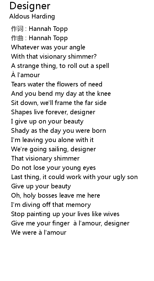 | [03:22.997] | Give me your finger a l' amour, designer |