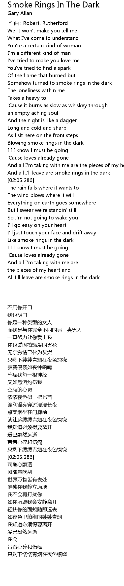 | [02:00.538] | And all I'll leave are smoke rings in the dark |