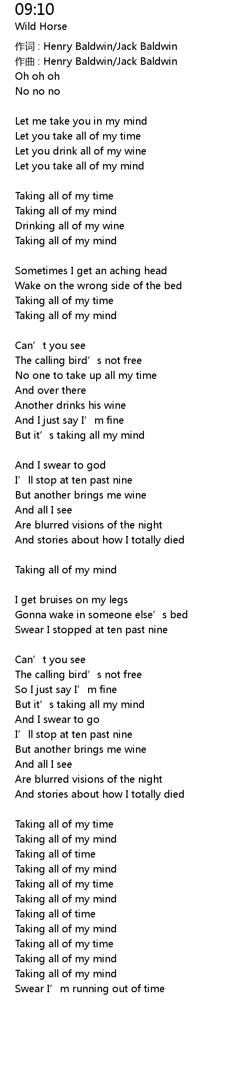 | Swear I stopped at ten past nine | |