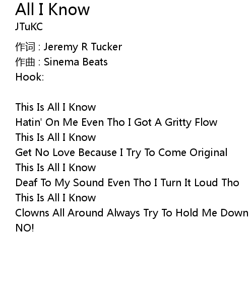 | 歌曲 | All I Know |