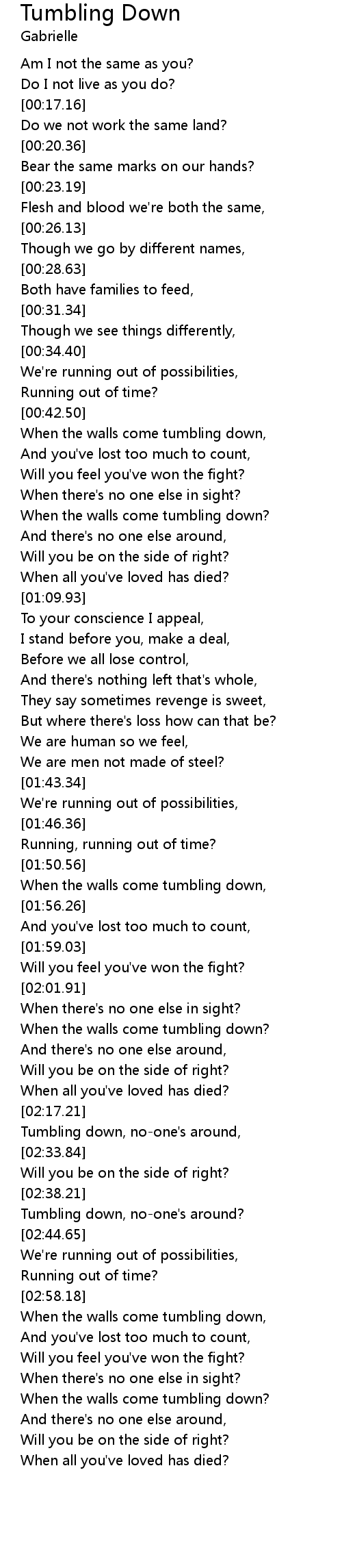 Tumbling down, no-one's around, |