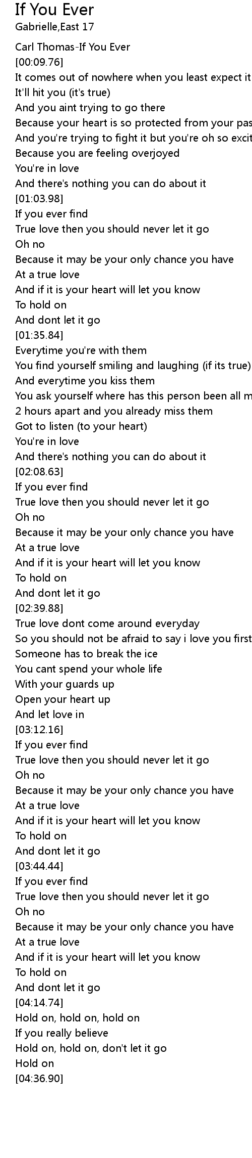 | [03:16.41] | True love then you should never let it go |