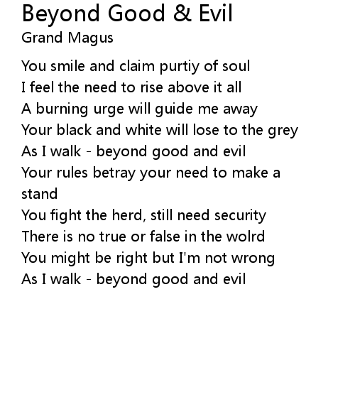 | As I walk - beyond good and evil |
