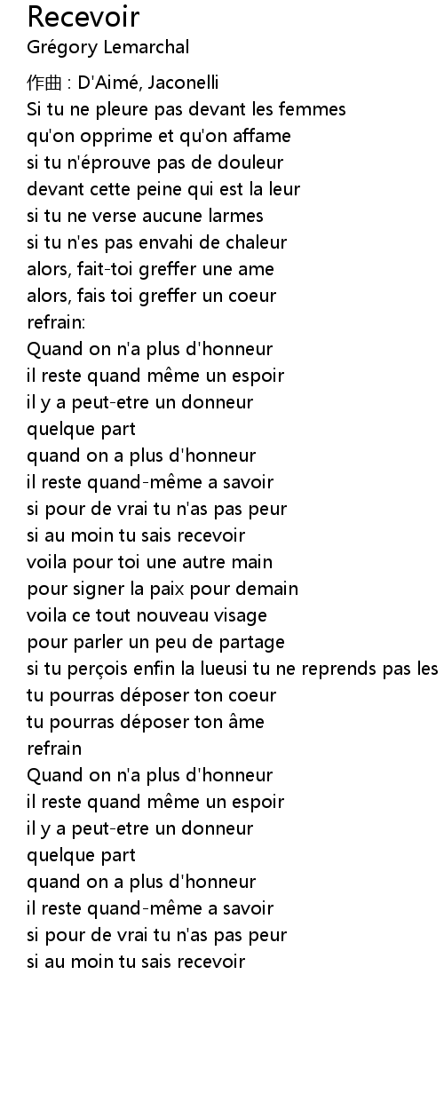 | si tu per ois enfin la lueusi tu ne reprends pas les larmes | |