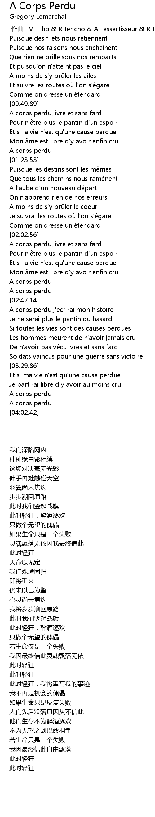 | [02:39.50] | A corps perdu |