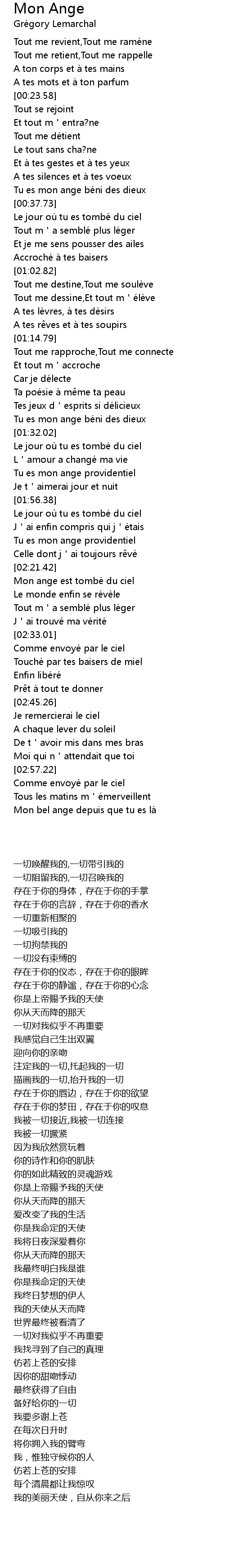 | [00:36.48] | Tu es mon ange be ni des dieux |