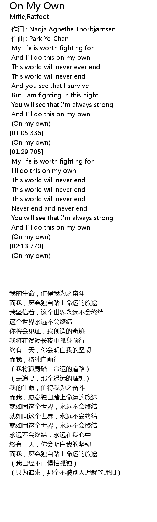 | [02:10.163] | (我已经不再惧怕孤独) |