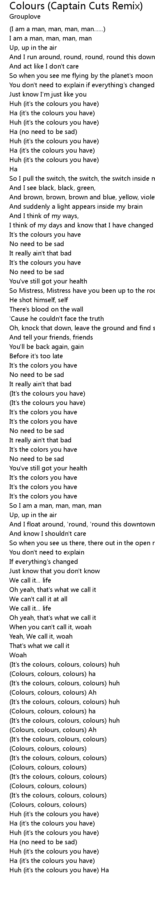 | [03:41.92] | (It's the colours, colours, colours) huh |