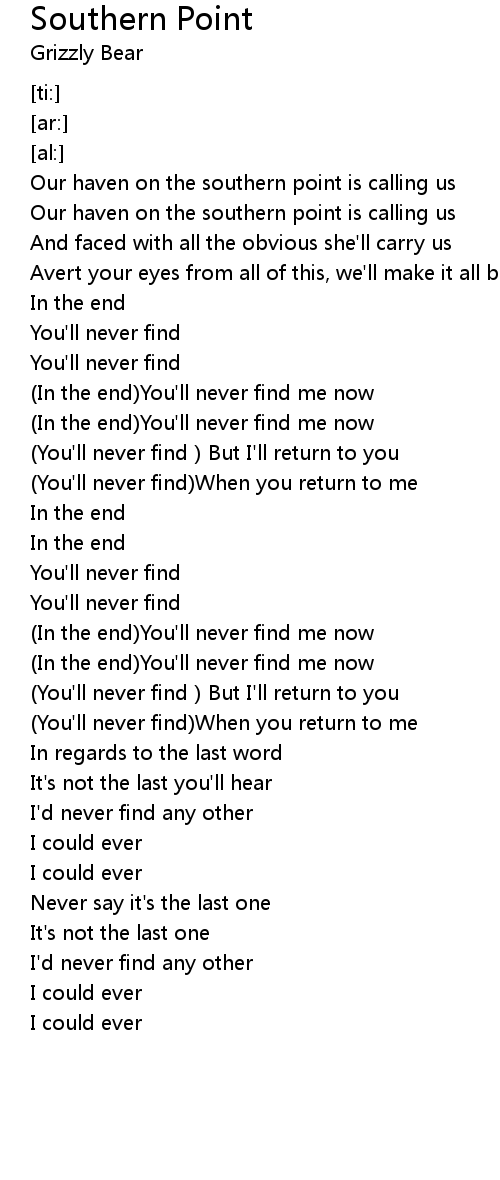 | [00:30.99] | Our haven on the southern point is calling us |