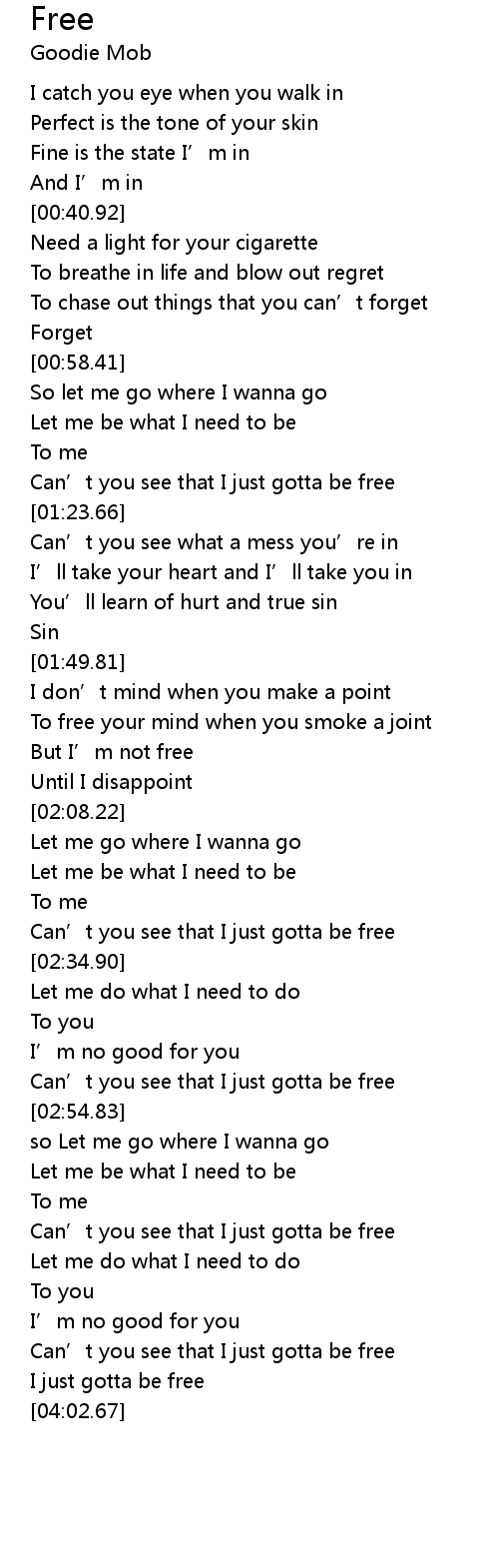 | [03:47.61] | Can' t you see that I just gotta be free |