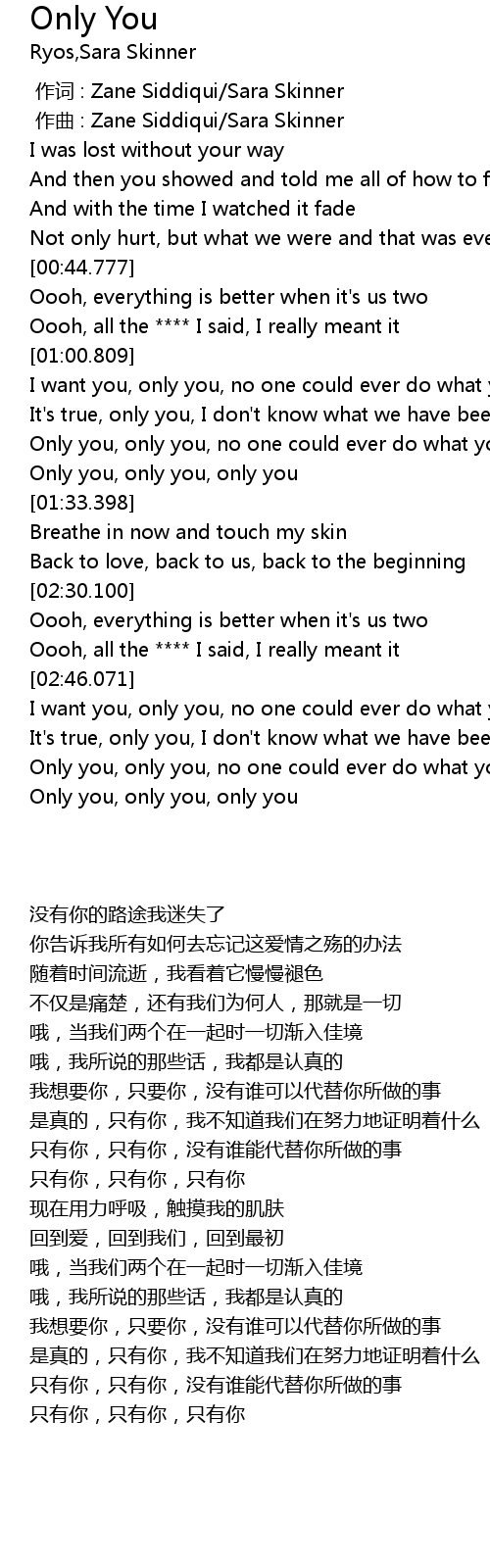 | [01:00.981] | I want you, only you, no one could ever do what you do |