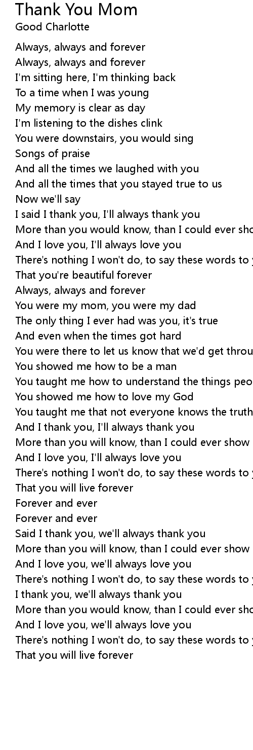 And I thank you, I'll always thank you |