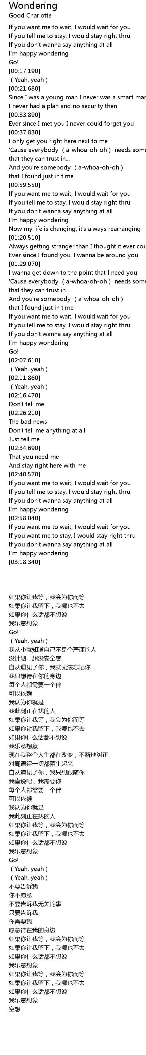 | 歌曲 | Wondering |