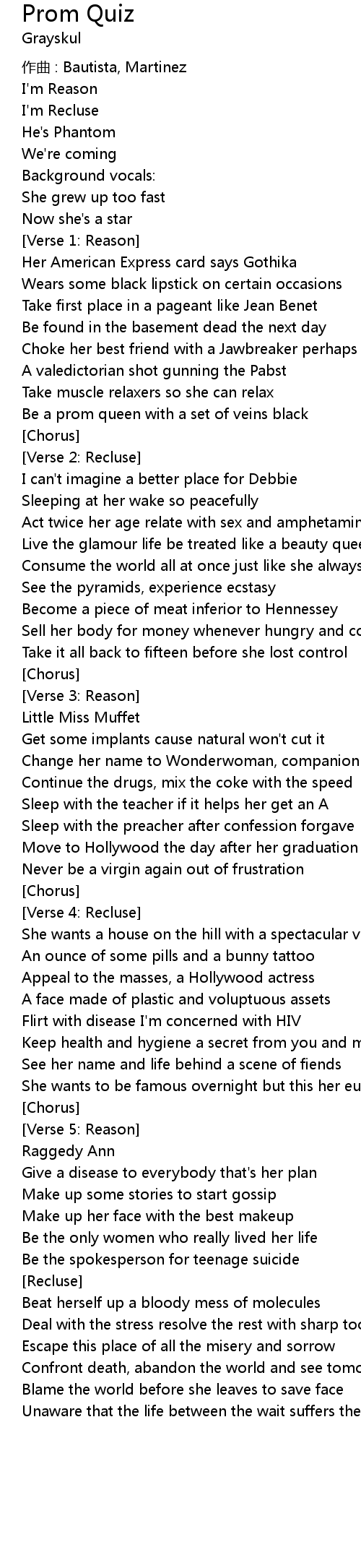 | 歌曲 | Prom Quiz |