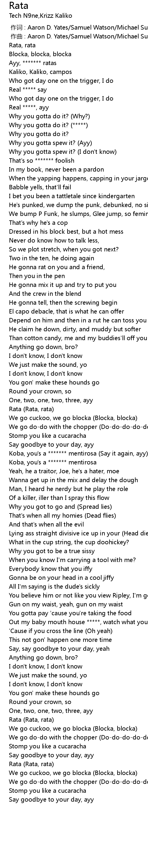| [01:32.68] | Koba, you's a ******* mentirosa (Say it again, ayy) |