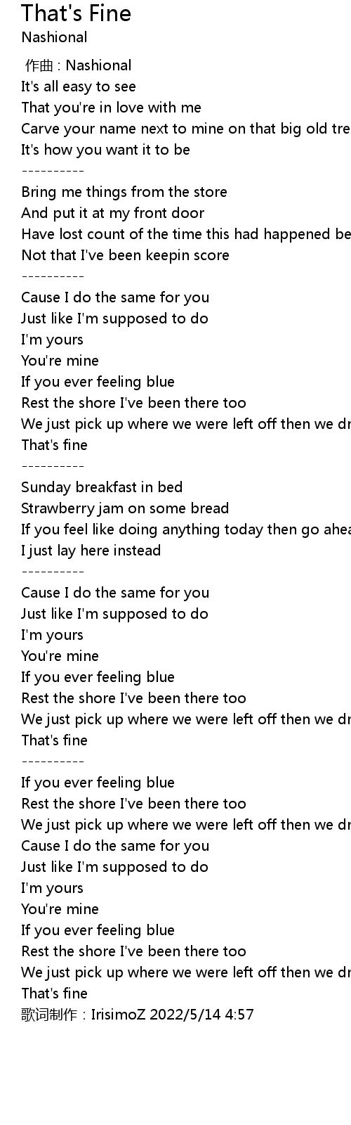 | 歌曲 | That's Fine |