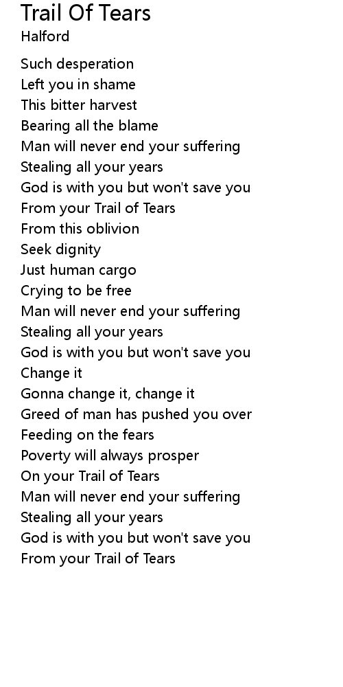 On your Trail of Tears |
