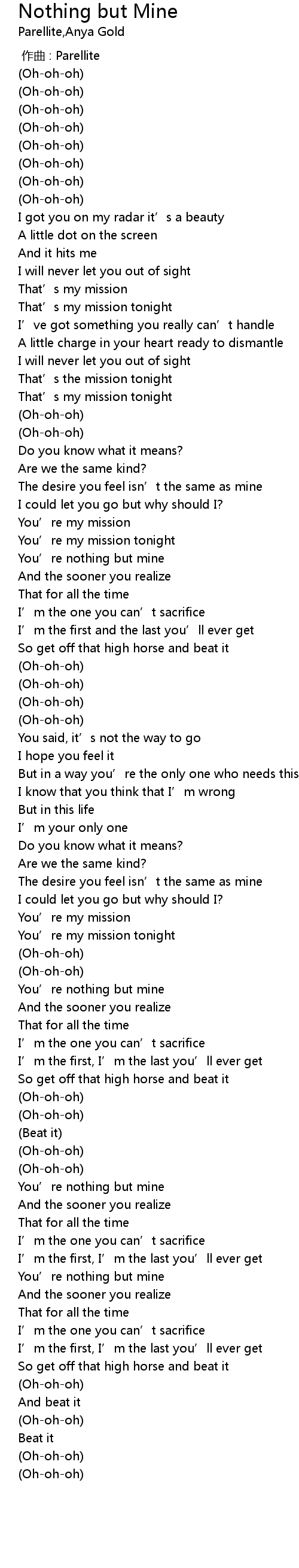 Nothing but Mine 歌词