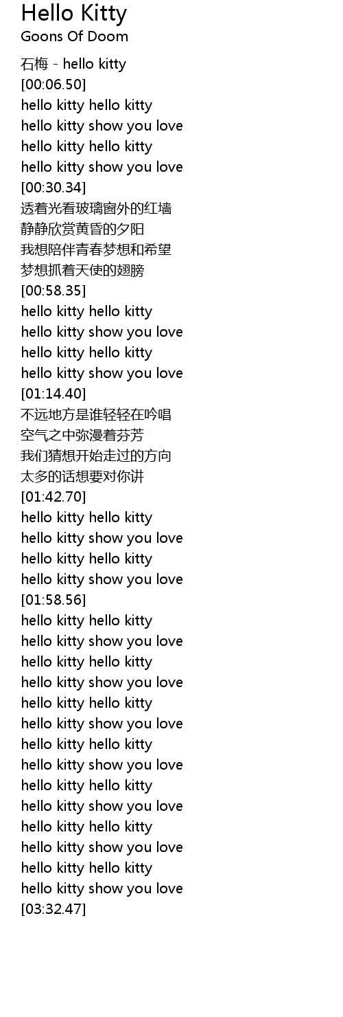 | [03:03.25] | hello kitty hello kitty |
