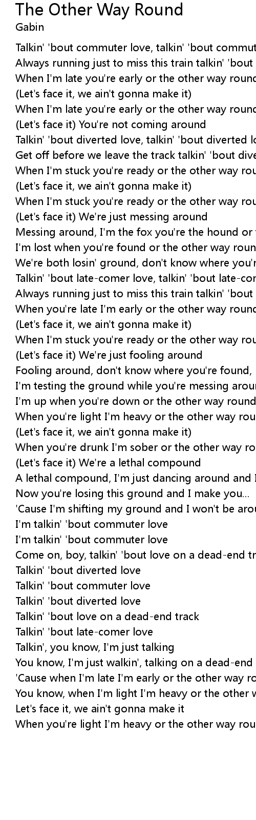 When I'm late you're early or the other way round, now |
