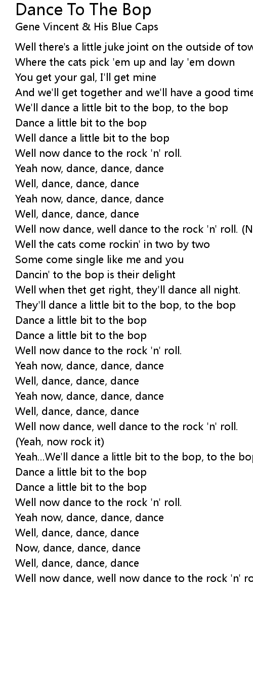 Yeah...We'll dance a little bit to the bop, to the bop |