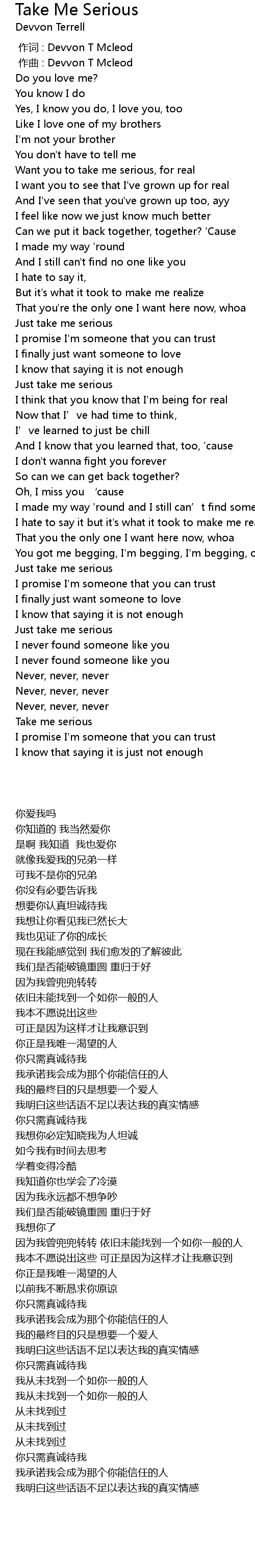 | [00:00.000] | 作词 : Devvon T Mcleod |
