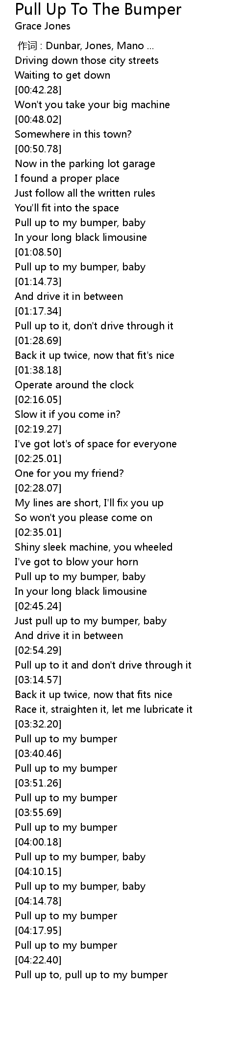 | [03:58.24] | Pull up to my bumper |