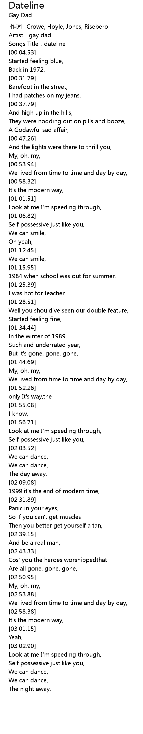 | [00:00.00] | 作词 : Crowe, Hoyle, Jones, Risebero |