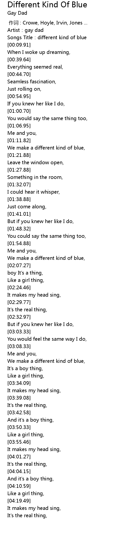 | [00:05.98] | Songs Title:different kind of blue |