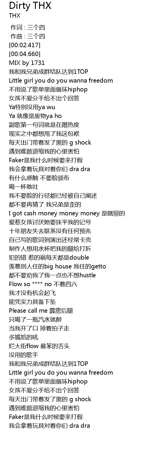 | [01:04.822] | I got cash money money money 是瞎掰的 |
