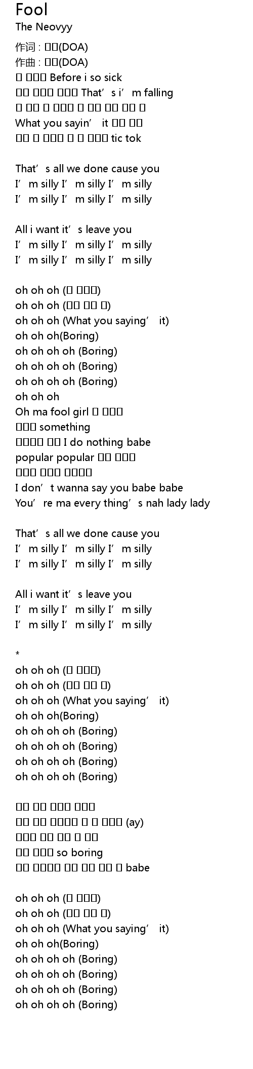 | Oh ma fool girl 난 지겨워 | |