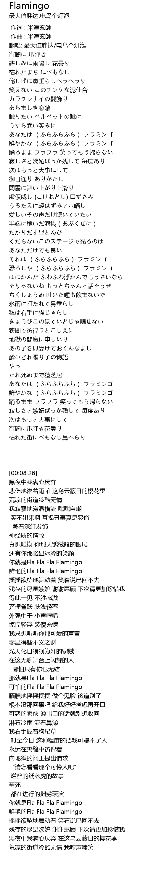 | [00:46.17] | あなたは (ふらふらふら) フラミンゴ |