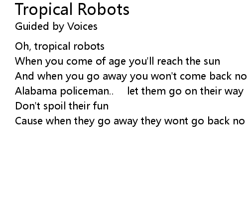 | 歌曲 | Tropical Robots |