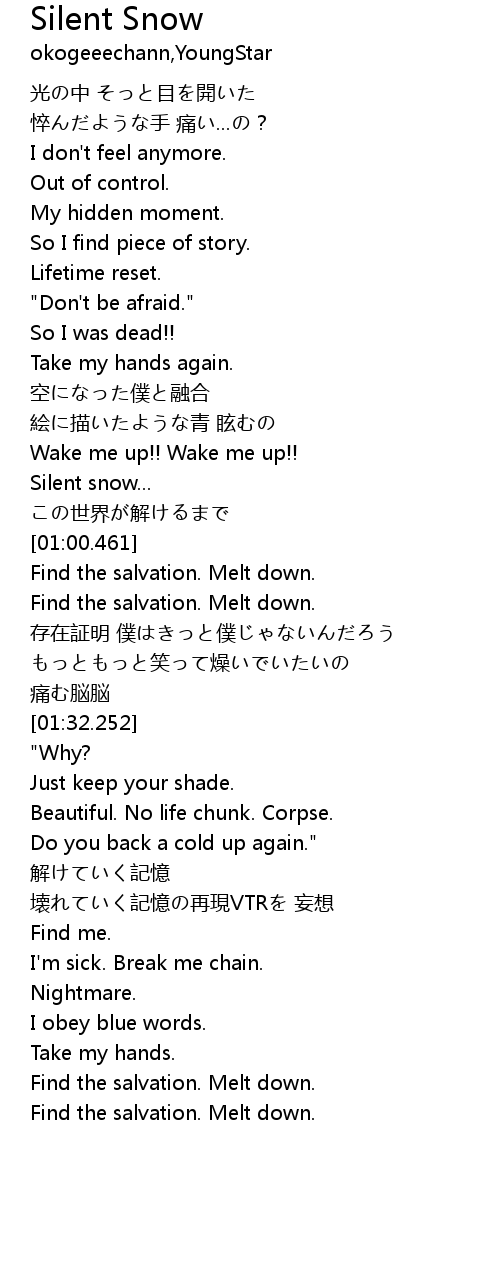 | [01:51.765] | 壊れていく記憶の再現VTRを 妄想 |