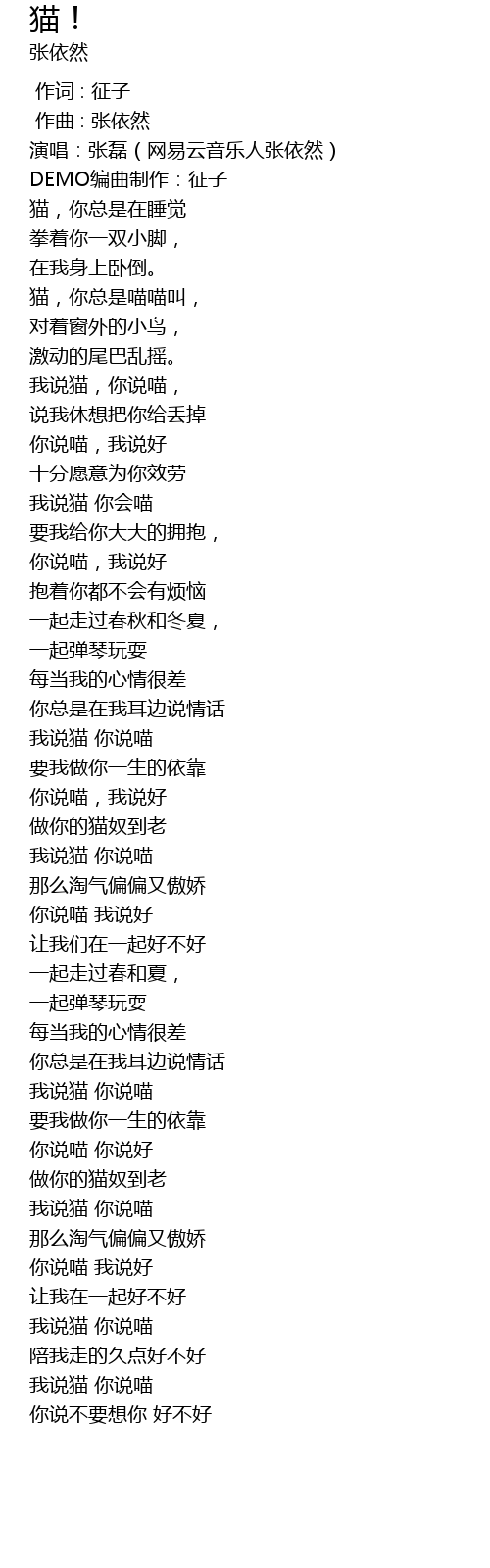 | [00:34.639] | 猫,你总是喵喵叫, |